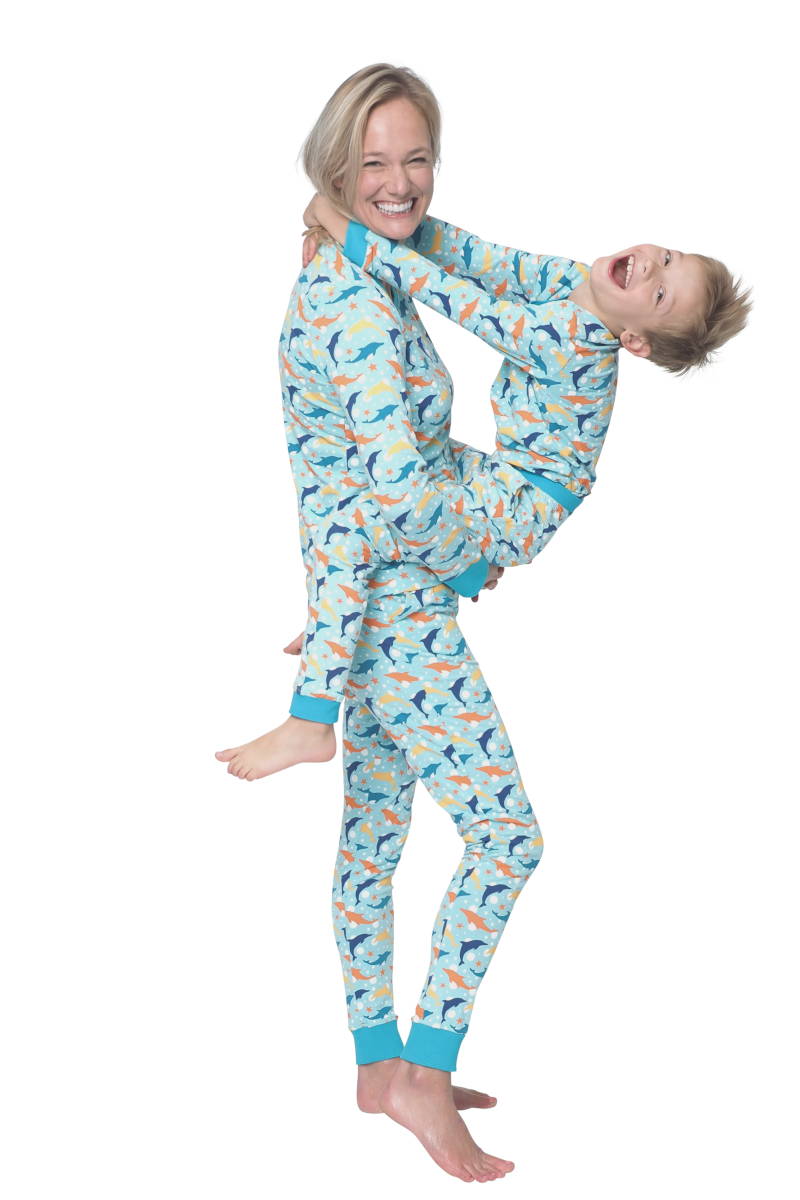 Deze Happy Sea pyjama is ook erg leuk voor kinderen. De dolfijnen en kleuren zullen elk kind aanspreken, zowel jongens als meisjes. Hij is dan ook geschikt als jongens- en meisjespyjama. Verkrijgbaar in maat 98 t/m 152. En hoe leuk zou het ook zijn voor jou als moeder om je kind te zien in dezelfde pyjama als jouw damespyjama? Je kind zal dat helemaal geweldig vinden. Tijd voor een fotomoment!