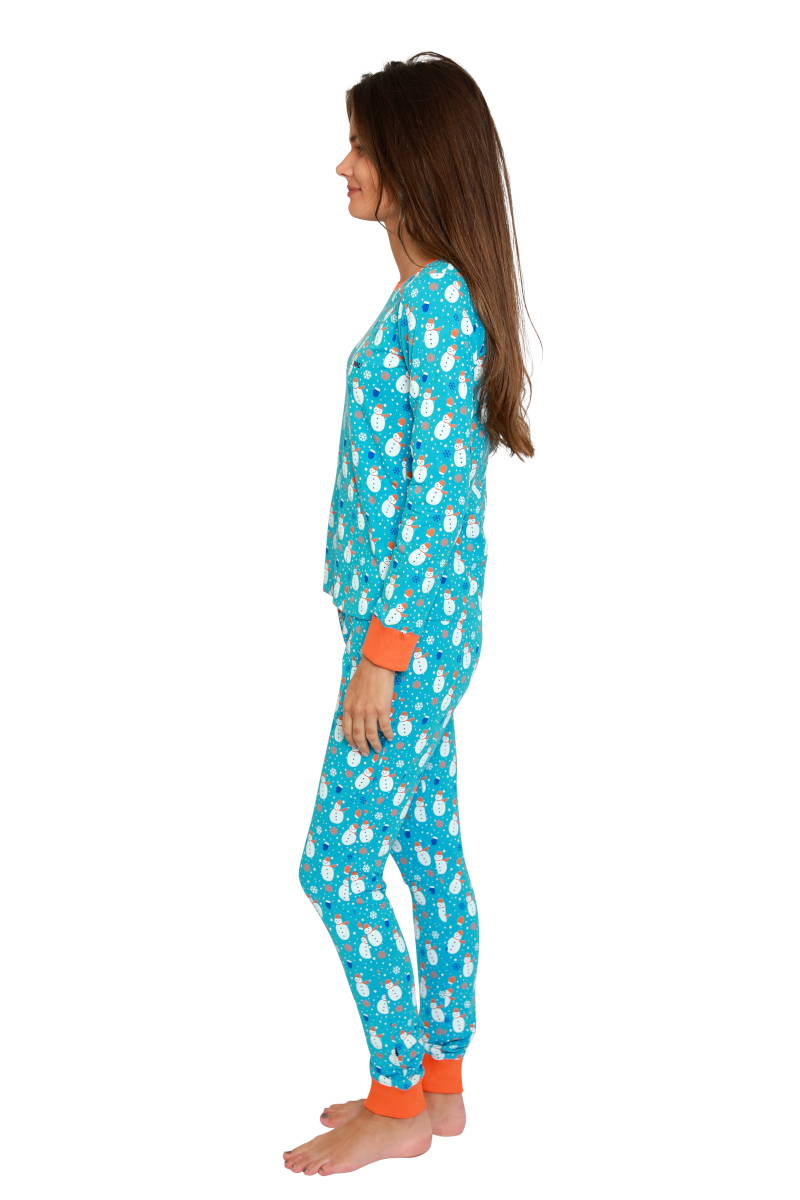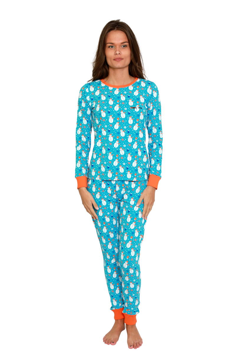 Deze winter pyjama Happy Winter, voor dames en kinderen, laat jouw helemaal in de wintersferen komen! De comfortabele pasvorm en de elastische band bij je middel zorgen voor een prettig gevoel, hij zit zo comfortabel dat je bijna niet voelt dat je hem aan hebt. De dames pyjama heeft een mooie blauwe kleur, lichtblauw, en de kleurrijke illustraties zorgen voor een vrolijk geheel. Deze dames pyjama is goed geschikt voor de herfst, de winter en het voorjaar. Het is maar net wanneer jij een beetje extra warmte nodig hebt en hoe warm jouw dekbed is. Deze winter pyjama is gemaakt van duurzaam katoen en van goede kwaliteit. Hij gaat lang mee en is sterk en elastisch.