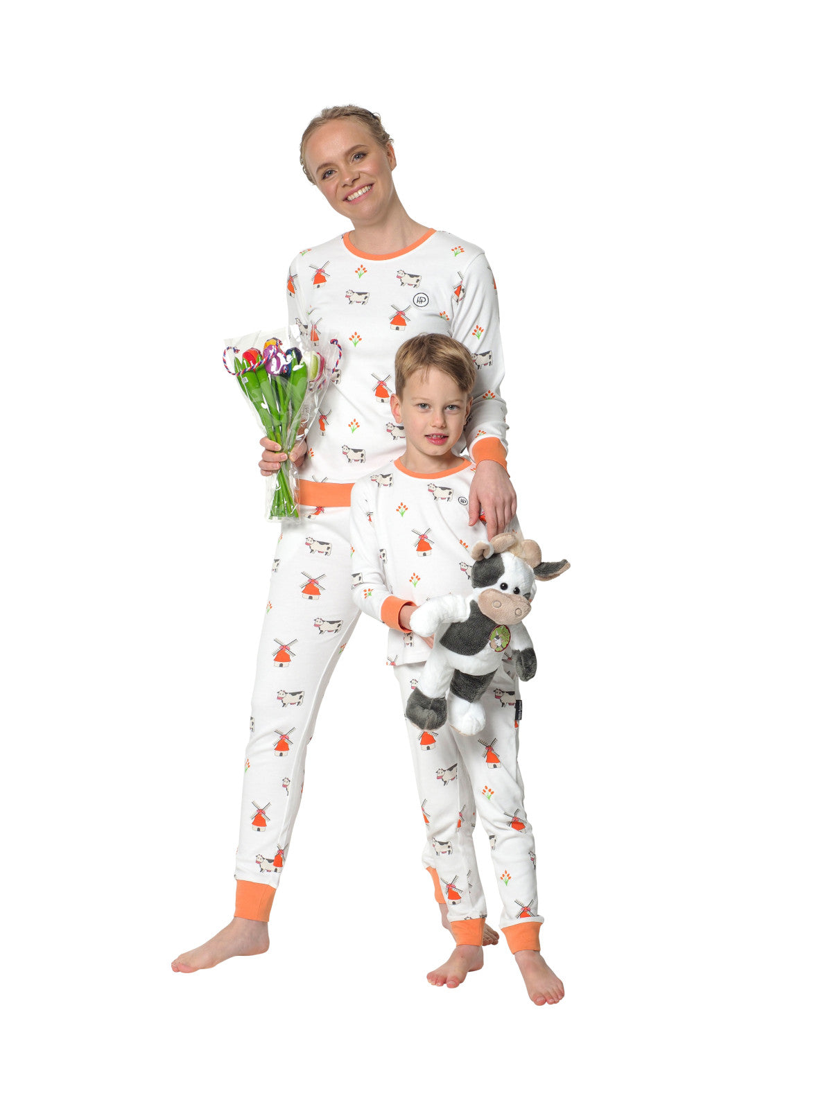 Dat is misschien een lastige vraag.. er zijn zoveel mogelijkheden! Eerst maak je een keuze uit de menugang die je in het teken van Pasen wilt zetten. We bespreken eerst het Paasontbijt dat in de ochtend plaatsvindt. Je wordt wakker, blijft misschien nog even in bed liggen in je pyjama, en staat dan rustig op. Het is lekker huiselijk en knus om in je pyjama aan te schuiven bij het paasontbijt! Wij hebben een leuke lente pyjama, die goed past binnen het thema Pasen! Dat is namelijk onze Happy Pyjama Dutch edition voor mannen, vrouwen en kinderen! Een leuke katoenen pyjama met molens, koeien en oranje tulpen. Een leuke pyjama voor in de lente! Je kunt ook met z’n allen dezelfde pyjama dragen bij het paasontbijt, want hij is er voor kids, dames en heren! Ook in een nachthemd variant voor dames, of in een shirt en boxershort voor mannen. De Dutch edition is één van onze populairste pyjama’s voor de lente en de periode rondom Pasen! Super vrolijk en lekker comfortabel.