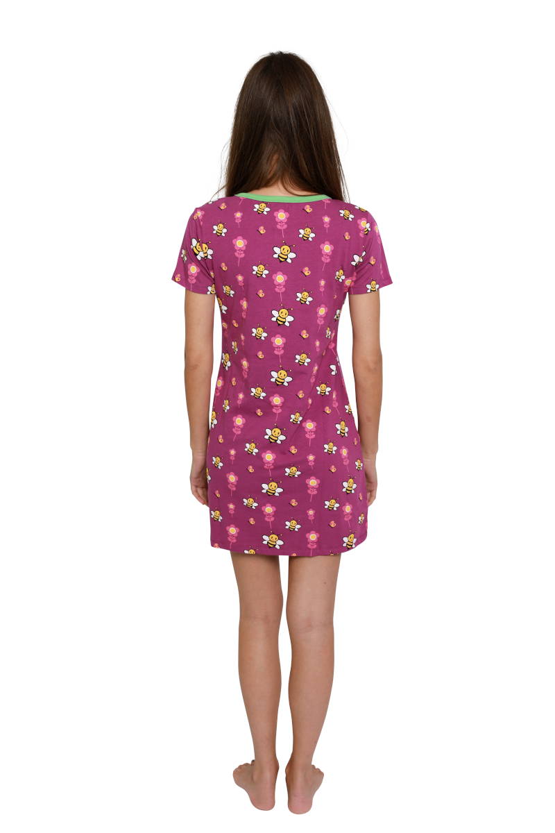 Nachthemd Summer Nature is een lekker zittende nachthemd/nachtjapon voor de warmere dagen en nachten. Het nachthemd Summer Nature heeft de mooie kleuren van een warme zomerdag in de natuur zoals groen en paars. Denk aan de prachtige bloeiende bloemen en de vlinders en bijen die dan weer tevoorschijn komen. Je ruikt de lekkere geur van bloemen als je buiten komt en ook ’s avonds kun je nog heerlijk buiten zitten in dit big shirt voor dames. De paarse kleur zal je goed staan en de nachtkleding zal vast en zeker lekker zitten. Dan kun jij lekker genieten van de avond en je nachtrust in je dames nachthemd korte mouwen!