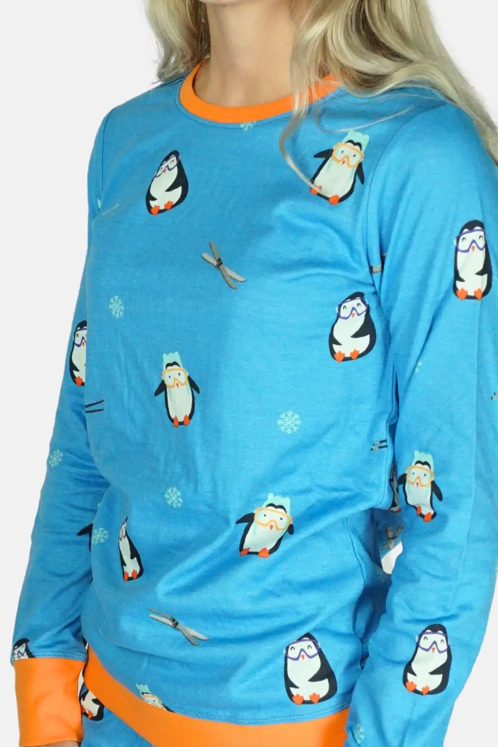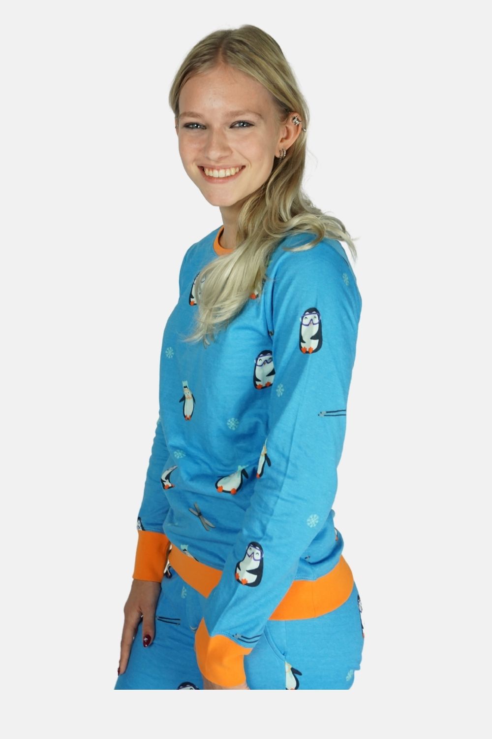 Pinguïns en skies dames pyjama | Diepblauw katoen